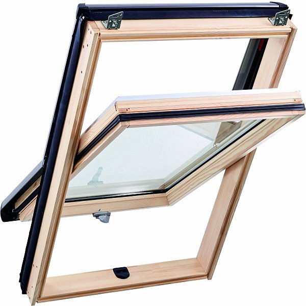 Окно R45 Н200 с термоблоком, 65х118 см, из дерева (однокамерное, среднеповоротное), Roto
